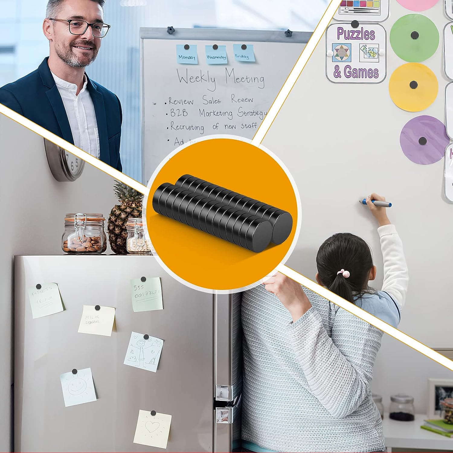 ☞ Diese Scheibenmagnete sind sehr stark. Sie eignen sich hervorragend für die Anwendung auf selbstklebenden magnetischen Tafelfolien und Glas-Magnettafeln.