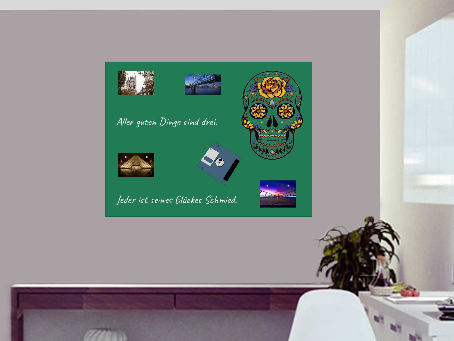 ☞ TIPP: Wenn Du nicht sicher bist ob die Folie mit der gesamten Klebefläche fest an der Wand angebracht werden kann, klebe die Folie auf eine Platte und bringen diese an die Wand an – das hat gleichzeitig den Vorteil das die selbstklebende Folie auch mal an einer anderen Stelle installiert werden kann. Wir empfehlen dafür Platten aus Kunststoff, AluDibond, Acrylglas oder Holz. Diese findest Du kostengünstig in jedem Baumarkt.