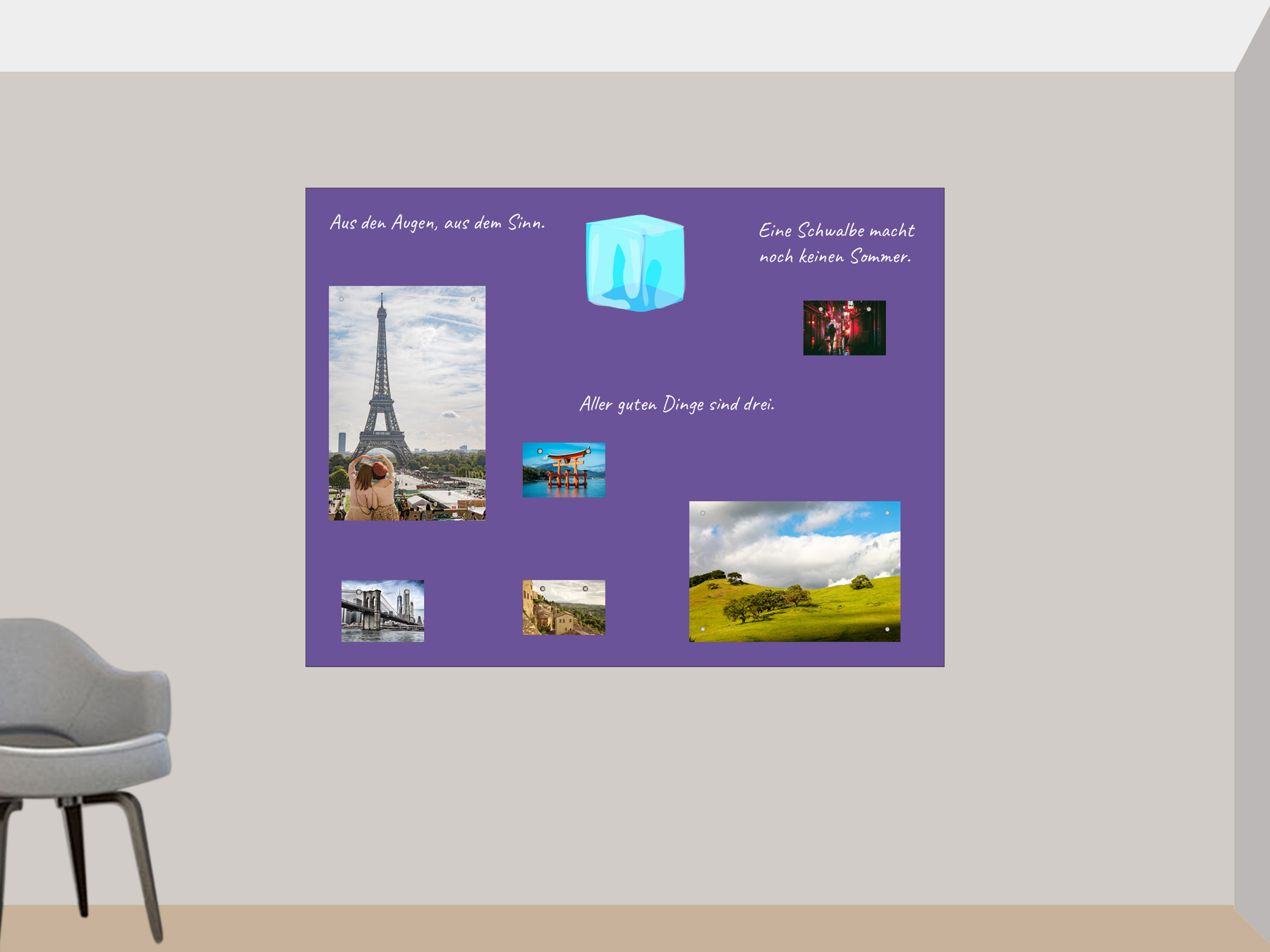 ☞ TIPP: Wenn Du nicht sicher bist ob die Folie mit der gesamten Klebefläche fest an der Wand angebracht werden kann, klebe die Folie auf eine Platte und bringen diese an die Wand an – das hat gleichzeitig den Vorteil das die selbstklebende Folie auch mal an einer anderen Stelle installiert werden kann. Wir empfehlen dafür Platten aus Kunststoff, AluDibond, Acrylglas oder Holz. Diese findest Du kostengünstig in jedem Baumarkt.
