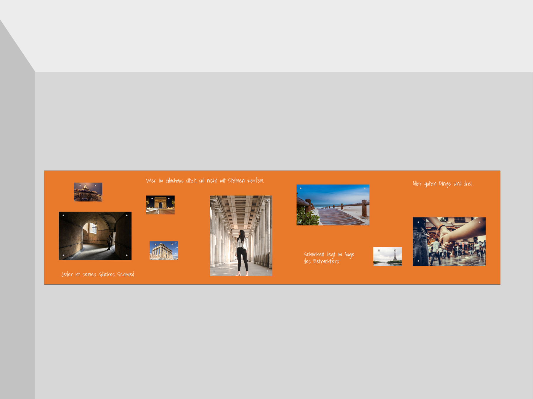 ☞ TIPP: Wenn Du nicht sicher bist ob die Folie mit der gesamten Klebefläche fest an der Wand angebracht werden kann, klebe die Folie auf eine Platte und bringen diese an die Wand an – das hat gleichzeitig den Vorteil das die selbstklebende Folie auch mal an einer anderen Stelle installiert werden kann. Wir empfehlen dafür Platten aus Kunststoff, AluDibond, Acrylglas oder Holz. Diese findest Du kostengünstig in jedem Baumarkt.