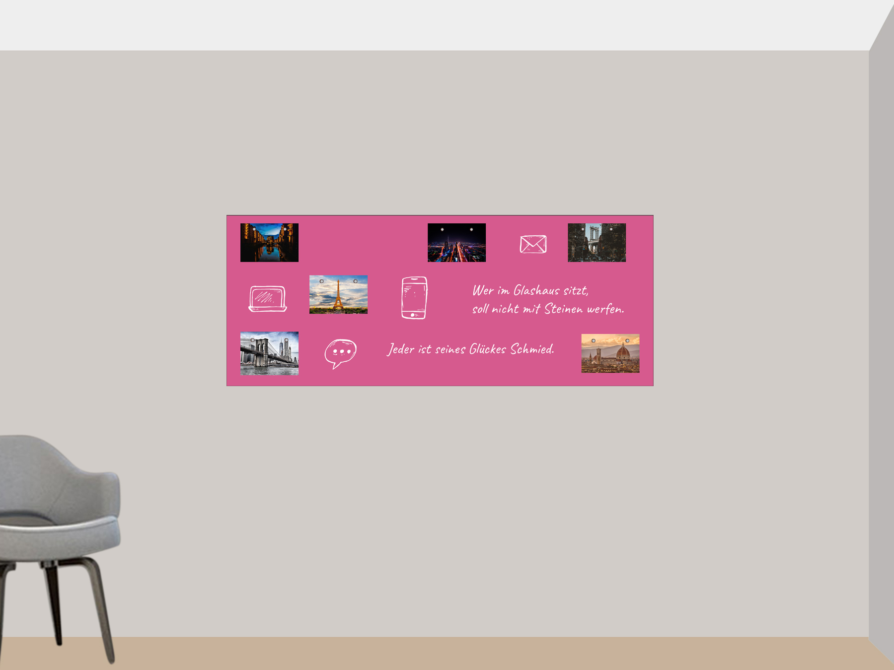 ☞ TIPP: Wenn Du nicht sicher bist ob die Folie mit der gesamten Klebefläche fest an der Wand angebracht werden kann, klebe die Folie auf eine Platte und bringen diese an die Wand an – das hat gleichzeitig den Vorteil das die selbstklebende Folie auch mal an einer anderen Stelle installiert werden kann. Wir empfehlen dafür Platten aus Kunststoff, AluDibond, Acrylglas oder Holz. Diese findest Du kostengünstig in jedem Baumarkt.