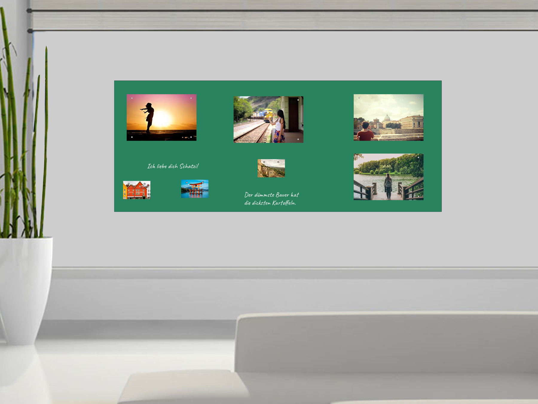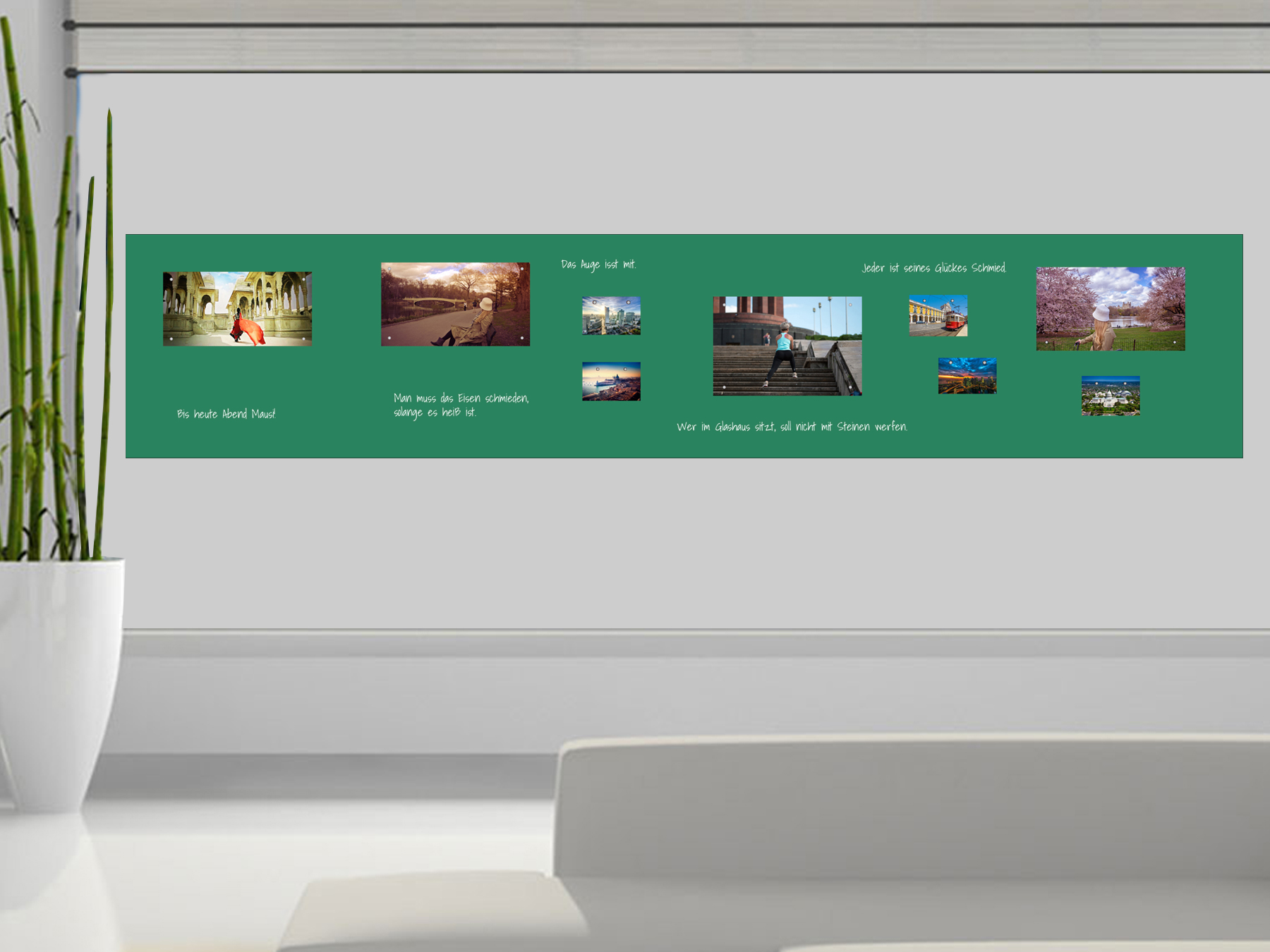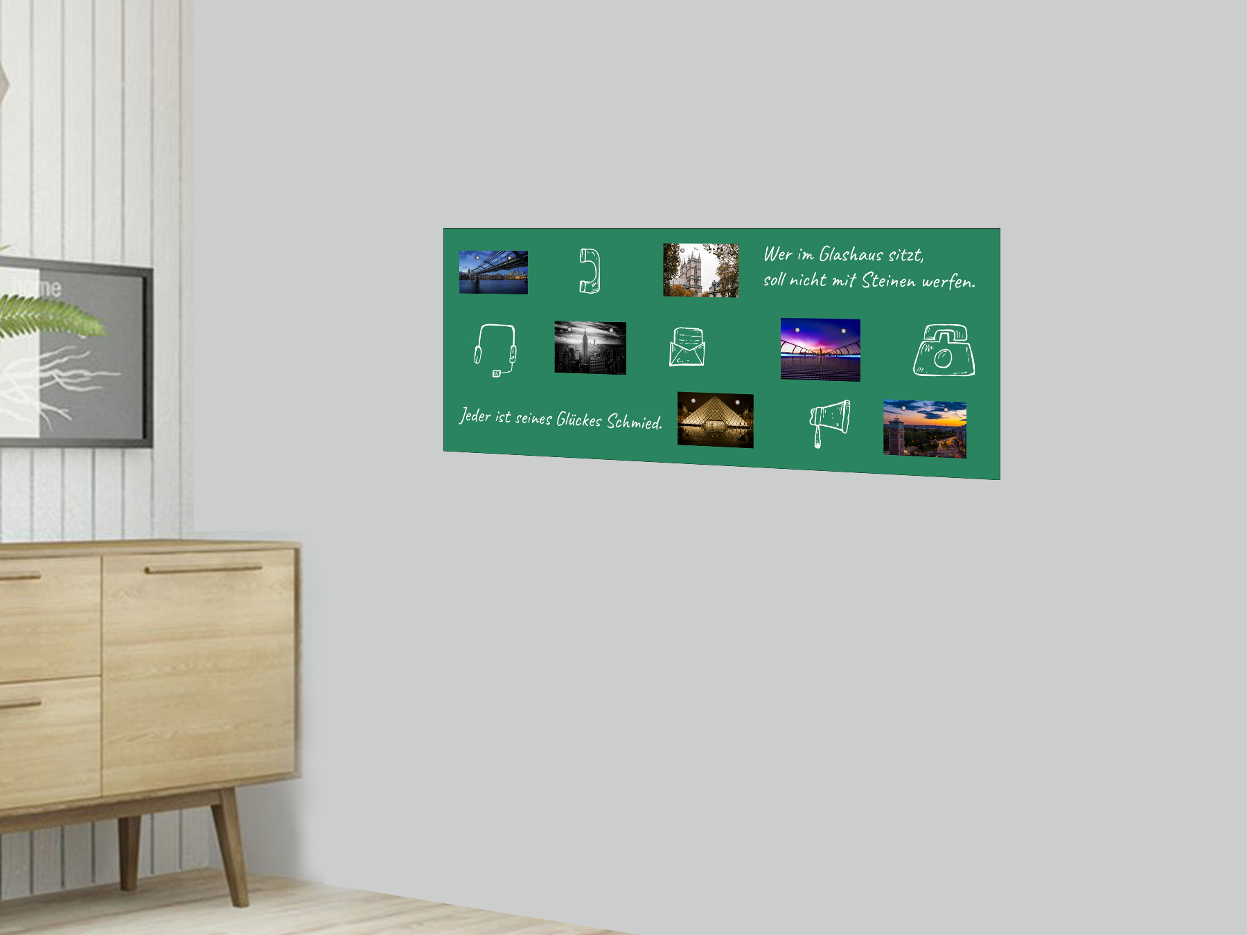 ☞ TIPP: Wenn Du nicht sicher bist ob die Folie mit der gesamten Klebefläche fest an der Wand angebracht werden kann, klebe die Folie auf eine Platte und bringen diese an die Wand an – das hat gleichzeitig den Vorteil das die selbstklebende Folie auch mal an einer anderen Stelle installiert werden kann. Wir empfehlen dafür Platten aus Kunststoff, AluDibond, Acrylglas oder Holz. Diese findest Du kostengünstig in jedem Baumarkt.