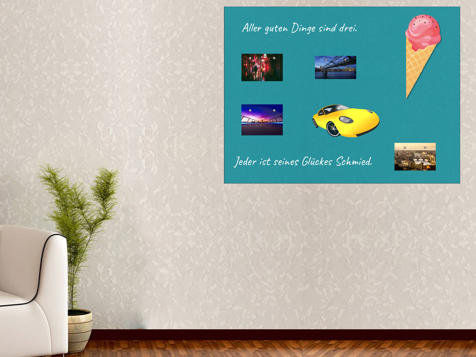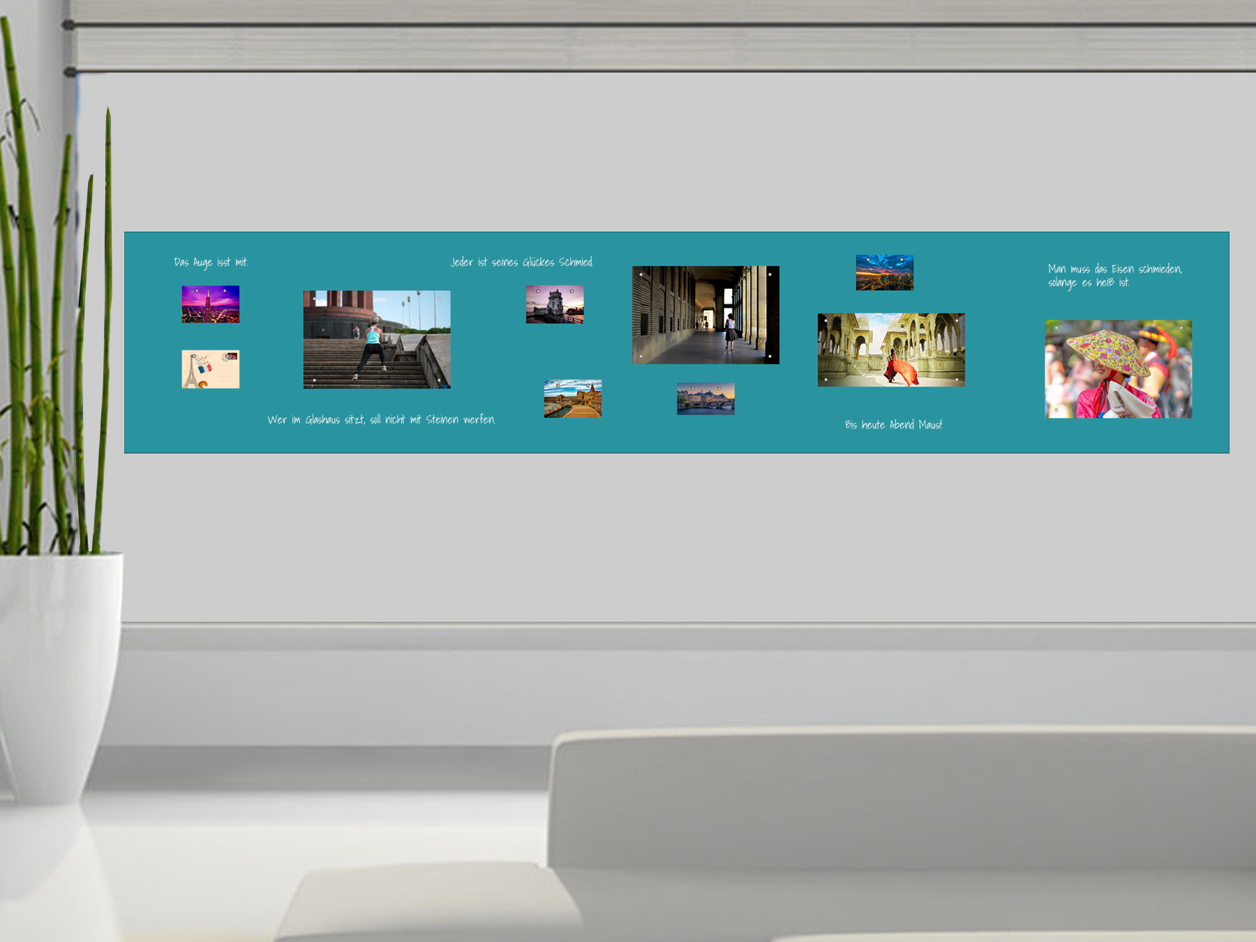 ☞ TIPP: Wenn Du nicht sicher bist ob die Folie mit der gesamten Klebefläche fest an der Wand angebracht werden kann, klebe die Folie auf eine Platte und bringen diese an die Wand an – das hat gleichzeitig den Vorteil das die selbstklebende Folie auch mal an einer anderen Stelle installiert werden kann. Wir empfehlen dafür Platten aus Kunststoff, AluDibond, Acrylglas oder Holz. Diese findest Du kostengünstig in jedem Baumarkt.