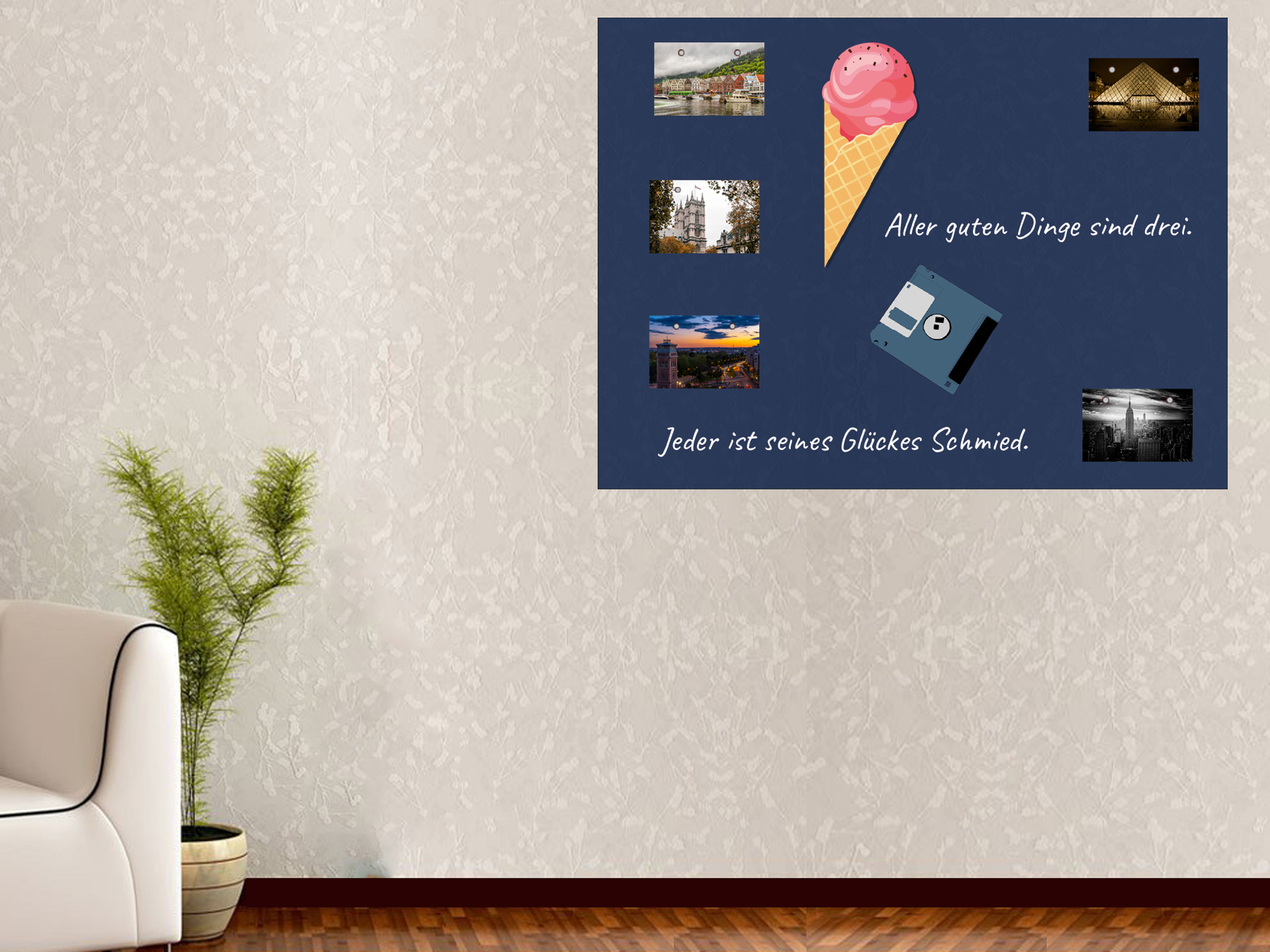 ✓ Die Tafelfolie ist ausschließlich für den Gebrauch mit Magneten bestimmt! – Bitte benutze keine Pinnwandnadeln zur Befestigung Deiner Notizen, Postkarten oder Briefe.