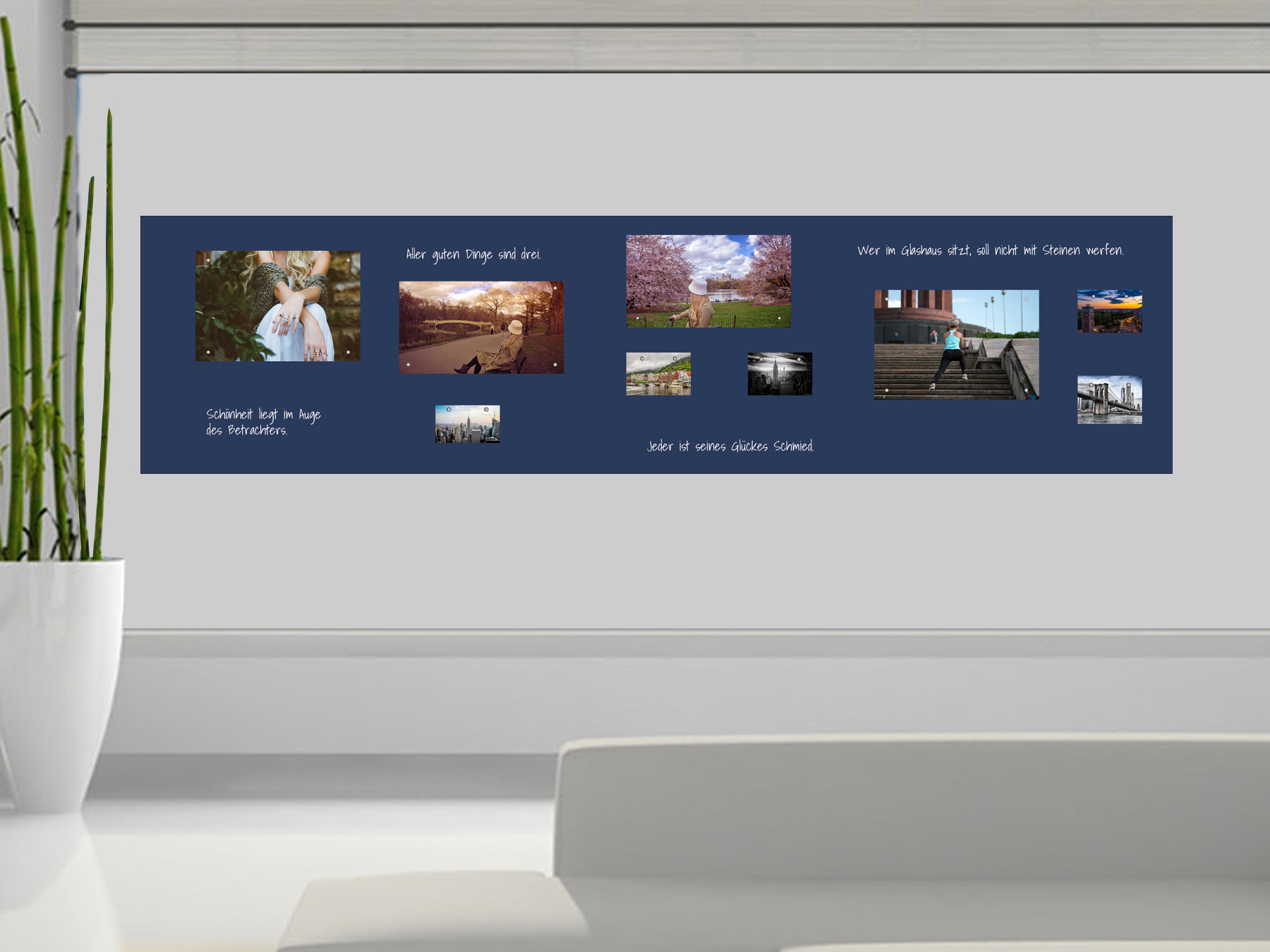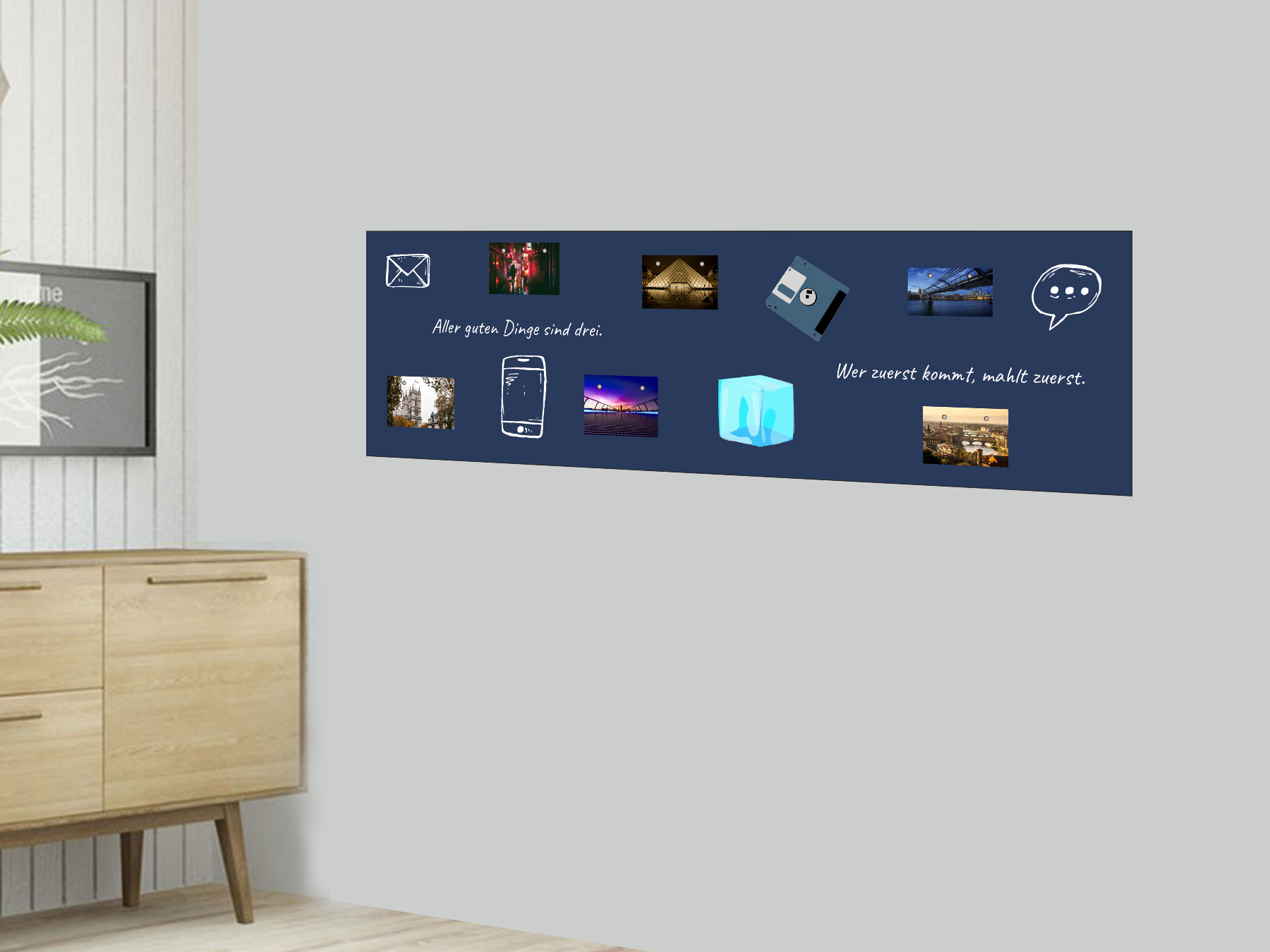 ☞ TIPP: Wenn Du nicht sicher bist ob die Folie mit der gesamten Klebefläche fest an der Wand angebracht werden kann, klebe die Folie auf eine Platte und bringen diese an die Wand an – das hat gleichzeitig den Vorteil das die selbstklebende Folie auch mal an einer anderen Stelle installiert werden kann. Wir empfehlen dafür Platten aus Kunststoff, AluDibond, Acrylglas oder Holz. Diese findest Du kostengünstig in jedem Baumarkt.